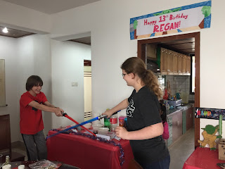 I didn't have anywhere else to put 13 candles, so we used light saber cupcakes for 12 and one very special candle right on top :)